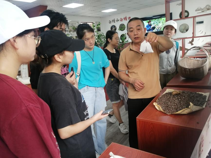 晨光初破,在非遗技艺传承人王荣国老师的热情接待下,老师与同学们首先踏入了麻柳村虫白蜡经济合作社展示馆的大门。王老师以其深厚的专业知识与满腔的热情,为师生们细细讲述了虫白蜡的传奇故事,从种虫的精心培育到蜡虫的奇妙蜕变,再到放种、采摘、熬蜡等每一道繁复而精细的工序,让在场的每一个人都对这一古老技艺的精湛与魅力有了更为直观且深刻的认识。虫白蜡,这一自然与智慧结晶的产物,其对生长环境的严苛要求——海拔600至1000米的山坡,更添了几分神秘与珍贵。