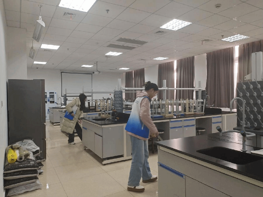 活动开始前,志愿者们领取相应工具、穿着整齐的志愿服,进入到不同的实验室内进行志愿服务。志愿者们不畏脏乱,细心清理每一个角落,以实际行动践行雷锋精神,为实验室的清洁与美丽贡献着自己的力量。活动现场,志愿者们热情高涨,分工明确,团结协作。
