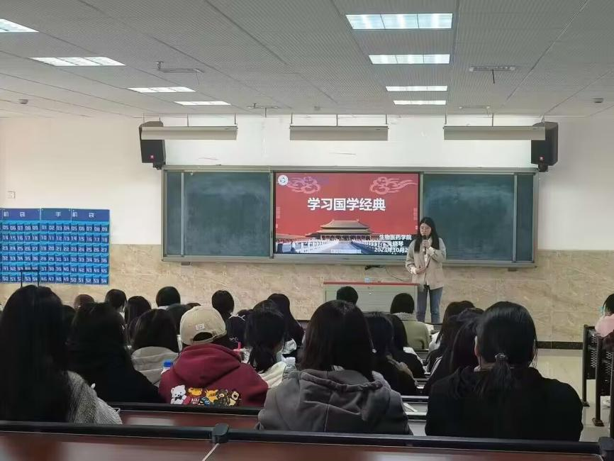 为加强同学们对中国共青团的历史、发展、章程、奋斗目标等的了解,发扬中国共青团的优良传统,加强团组织建设,推动校园文化发展,2023年10月20日至2023年10月22日生物医药学院于教学楼2C301开展了2023年秋季学期“青马工程”暨团校团课。本次团课课程主讲人为生物医药学院学生团委书记朱晓琴及团学易创各部门负责人,生物医药学院129名同学参加。