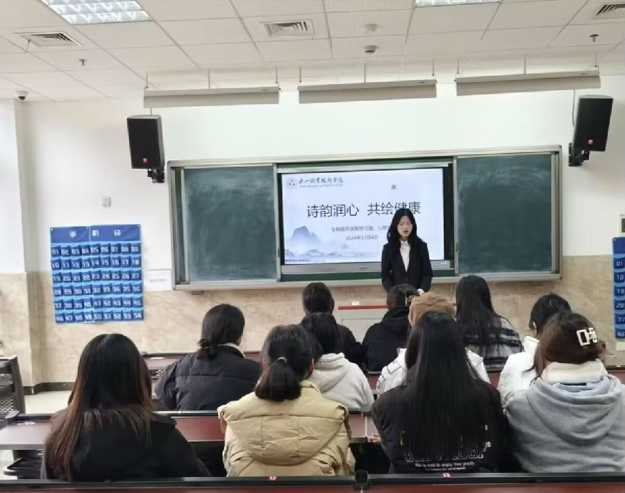 为了增进学生间的情感交流与思想碰撞,共同探索诗句中的深邃意境与人生智慧,生物医药学院于2024年12月4日在教学楼隆重举办了题为“诗韵润心,共绘健康”的诗词大赛。本次活动巧妙采用“看图猜诗句”的趣味形式,旨在引领同学们聚焦心理健康议题,利用古诗词的独特韵味与深远意境,为心灵带来慰藉与启迪,进一步推动校园内对心理健康议题的关注与参与热潮。