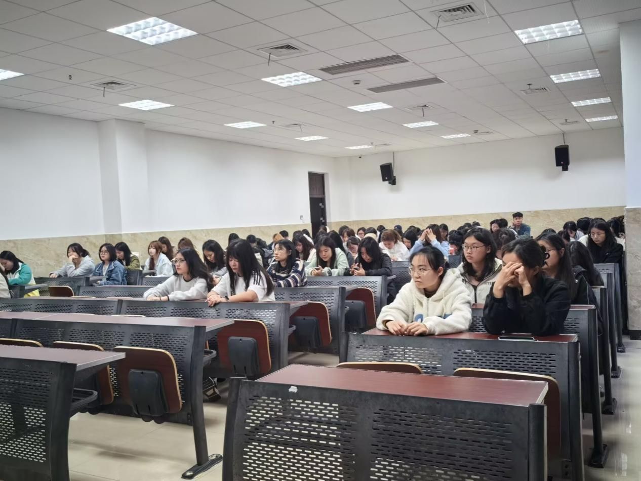 为保障清明假期后校园秩序平稳,提升学生安全防范意识,明确学业发展方向,生物医药学院于2025年4月6日(星期日)18:50-19:30在教学楼组织召开清明返校安全教育例会。会议由各级辅导员主持,23级、24级全体同学参会,重点围绕"防范电信诈骗"和"宿舍安全规范"两项议题展开。