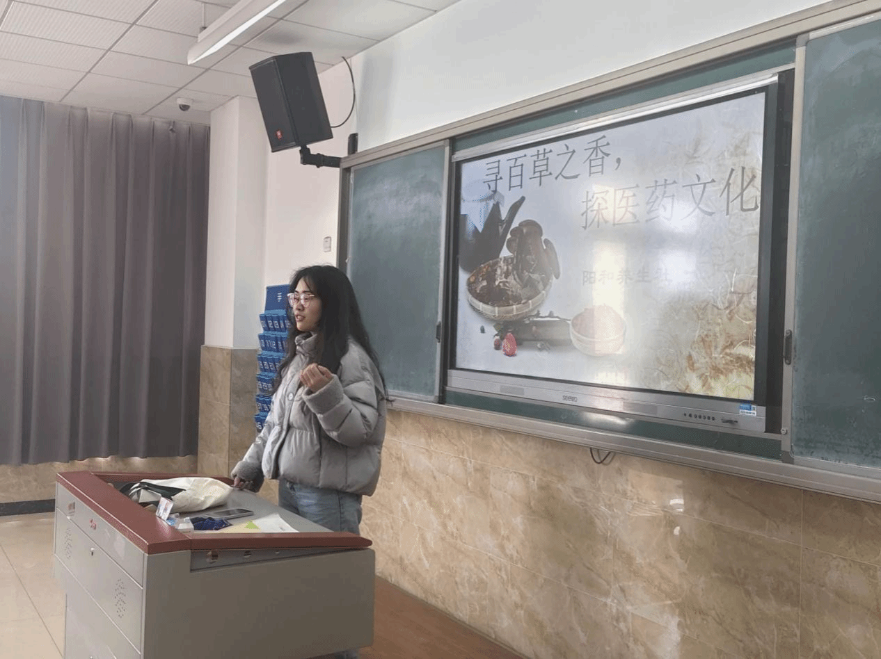 为打破大众对中草药知识认知匮乏的壁垒,让更多人了解不同中草药的外观、特性、功效等基础知识,推动中医药文化在社会中广泛传播,2025年4月2日下午,阳和养生社于教学楼举办了以“寻百草之香,探医药文化”为主题的社团活动。本次活动由周莉江老师指导,阳和养生社成员共同参与。