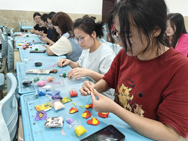 活动伊始,主持人梁群为同学们介绍立夏节气的时间、由来、气候特点及物候现象,展现节气与自然、生活的紧密联系。随后,聚焦立夏时节代表性中草药,将抽象的中医药知识转化为生动易懂的生活常识,为手工制作环节奠定知识基础。在视频教学环节,社员们通过直观的操作演示,学习粘土特性与中草药模型塑造技巧。 活动特别融入环保理念,通过讲解中草药与自然生态的依存关系,引导参与者思考可持续利用自然资源的重要性。在亲手塑形过程中,社员们不仅提升了动手能力,更通过对草药细节的观察,深刻体会到中医药文化“道法自然”的哲学内涵。多位参与者表示,此次活动让传统节气不再是书本上的概念,而是可触摸、可创作的文化体验。