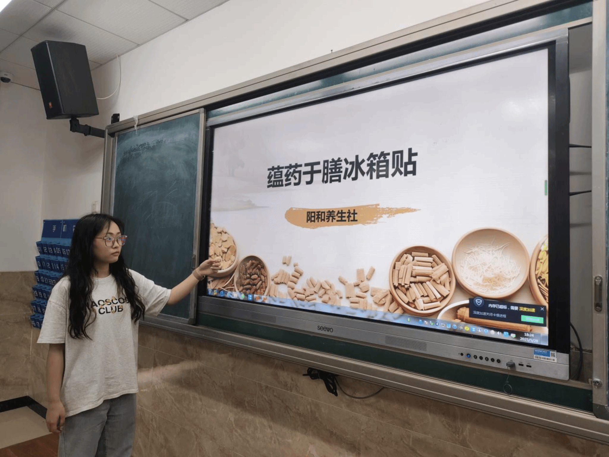 为了让同学们感受到中医药文化的博大精深,激发他们对中医药传统文化传承意识,阳和养生社于2025年5月28日下午在教学楼开展以“蕴药于膳冰箱贴”为主题的社团活动,本次活动由周莉江老师指导,阳和养生社成员共同参与。