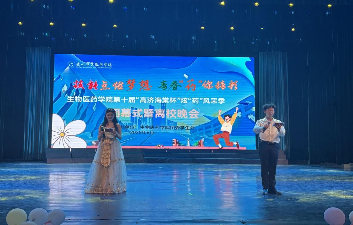 2025年6月15日晚,生物医药学院2025年第十届“高济海棠杯”炫“药”风采闭幕式暨离校晚会在学校礼堂隆重举行。本次晚会不仅是学术与才艺的交织,更是对即将奔赴实习岗位开启新程的学子们,送上的一份诚挚的祝福。参加本次活动的有生物医药学院党总支书记徐娇、副院长(主持工作)李喜安、党总支副书记靳婕、副院长朱链链、学生科科长张俊、辅导员卢妮娜、谢雨芩、学生团委书记朱晓琴以及全体师生800余名。