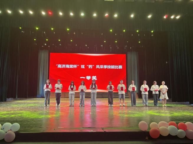 在颁奖环节,生物医药学院党总支书记徐娇、副院长(主持工作)李喜安、党总支副书记靳婕、副院长朱链链等领导走上舞台,为本届“高济海棠杯”炫“药”风采季技能比赛的获奖者以及优秀学生干部代表们颁发证书。这不仅是对获奖者卓越能力的肯定,更是对同学们一直以来努力学习、积极进取的高度认可,激励着同学们在未来的人生道路上继续追求卓越、勇攀高峰。