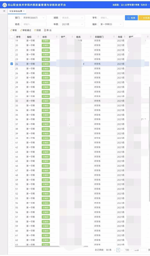 为切实做好诊改复核回访工作,积极响应学院号召,按照《BV伟德官方网站迎接内部质量保证体系建设与运行复核回访工作实施方案》文件要求,药学系秘书部和组织部在2022年7月初至10月18日期间共同开展了新版系统学生诊改工作,并全面完成诊改系统的数据录入。