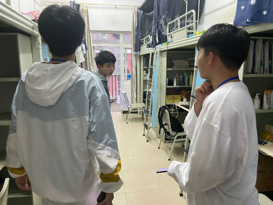 首先,对于寝室的卫生情况检查工作大家提前分工明确,分别从地面清洁度、物品摆放整洁度、门窗清洁度等方面进行清查,此外,还排查了是否使用违规电器等。检查结果良好,宿舍卫生和用电安全的整体情况较好。