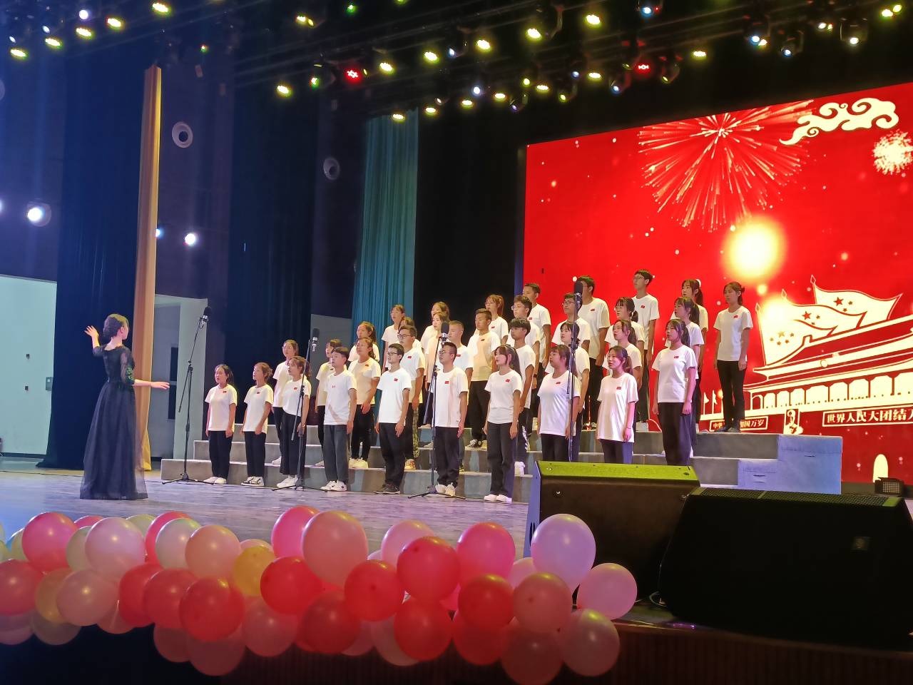 在主持人铿锵有力的介绍下,比赛正式开始。一首《大中国》拉开序幕,爽朗明亮的歌声唱出了同学们朝气蓬勃的精神风貌。随后,《我和我的祖国》、《我们都是追梦人》、《爱我中华》《红旗飘飘》等歌曲,无不展现了青年人积极向上的精神风貌和拳拳爱国之心。本次比赛的歌曲曲意各不相同,同学们准备充分,有齐唱、领唱,结合背景底幕,歌声或甜美、或铿锵、或轻柔、或昂扬,一次次将比赛推向高潮,引得台下掌声不断,现场气氛十分热烈。最后,本次比赛在20级团学易创学生干部带来的献歌《祖国不会忘记》中接近尾声。