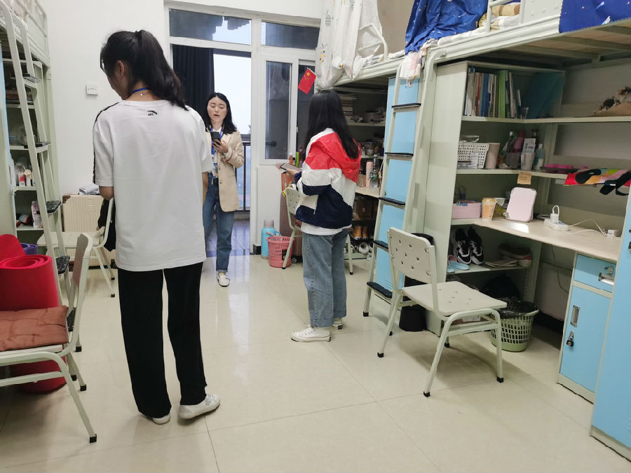 首先,值周老师宋建群带领生活部和纪检部成员进入寝室,检查人员针对寝室卫生与大功率电器进行检查。结果是寝室卫生总体良好,但有个别寝室物品摆放不整齐现象,未发现大功率电器。最后值周老师将查寝情况反馈于各班,要求不合格的班级、寝室进行整改。此次查寝顺利结束。
